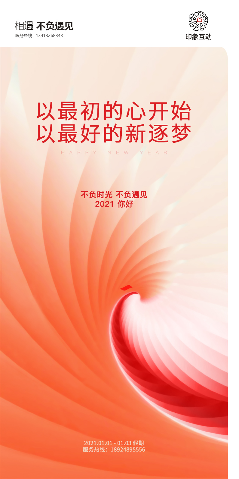 新故相推,日生不滯。新年的鐘聲快要敲響,我們即將迎來嶄新的2021年。在此,謹向關心支持印象互動(盈嘉網絡)的客戶朋友們,向辛勤工作的全體員工及家屬,致以最誠摯的新年祝福!2020年注定是不平凡的一年,突如其來的疫情使經濟運轉按下了暫停鍵,卻并未阻止我們前進的步伐。一年來,我們化危機、應變局、謀突破,以奮斗的姿態交出了高質量的答卷。這一年,我們獲得了國家高新技術企業榮譽,新增了82家客戶朋友……這一年的努力、堅持和小確幸,都讓我們記憶深刻,每一個閃光點背后,都是一份專屬的記憶,我們堅信心懷初心,再美的遠方也能抵達!此時此刻,華燈初上,萬家團圓。新年將至,惟愿山河錦繡、國泰民安!惟愿和順致祥、幸福美滿!